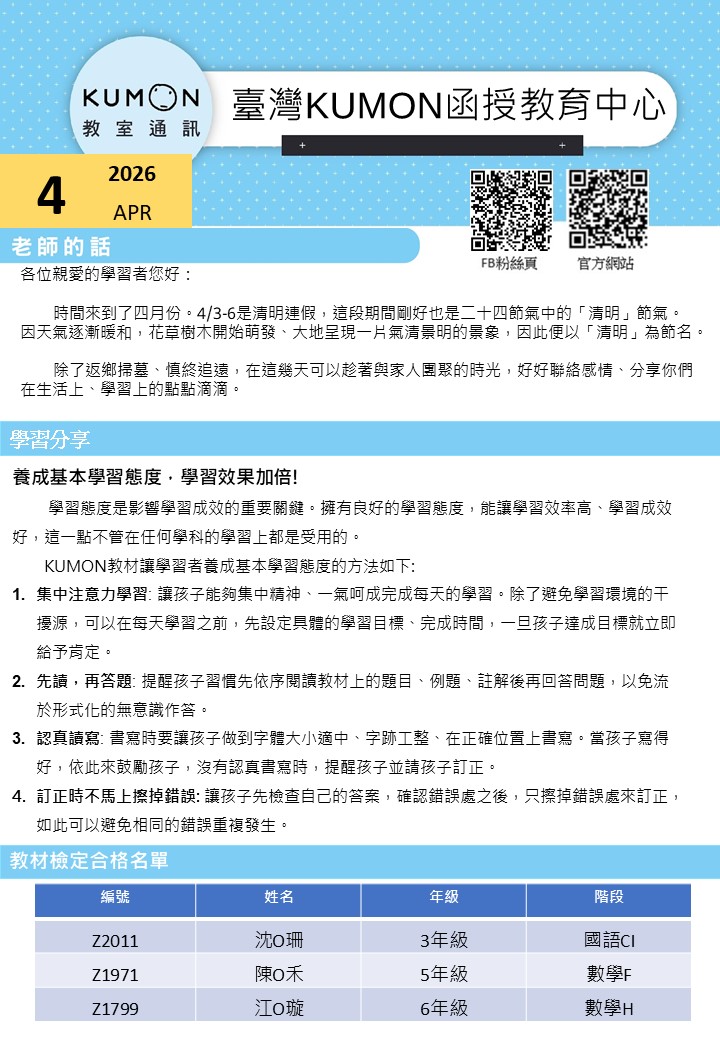 函授中心教室通訊202604
